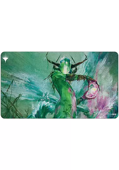 Playmats feature popular Magic: The Gathering artwork. Made with a soft fabric top to reduce damage to cards during play and a non-slip rubber backing to keep the playmat from shifting during use, playmats enhance the gameplay experience. With dimensions of approximately 24 in. x 13.5 in., a playmat also makes an excellent oversize mousepad for home or office.