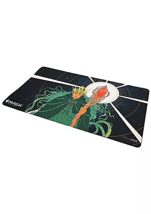 Up your game at your next game night with this official Magic: The Gathering playmat showcasing highly detailed and vibrant artwork from popular trading card game. Made with a premium fabric top to prevent damage to cards during game play for tabletop gamers. With dimensions of approximately 24″ X 13-1/2″, this playmat is also the perfect decorative over sized mouse pad for computer and laptop workstations. Non-slip rubber backing lets the playmat lay flat and prevents it from shifting during use.