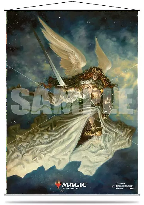 Bring classic Magic: The Gathering masterpieces to your game room with this premium, silky fabric wall scroll with black rods & hanging cord. Ultra PRO wall scrolls are made with the highest quality materials and printed with vibrant, full color, high resolution details on fabric that’s soft and silky to the touch. Dimensions are approximately 26.8 x 37.4 in. This officially licensed product is made only by Ultra PRO International – authenticity can be verified by our “UP” logo imprint on the rod ends. Features the classic Baneslayer Angel artwork from the popular trading card game Magic: The Gathering.