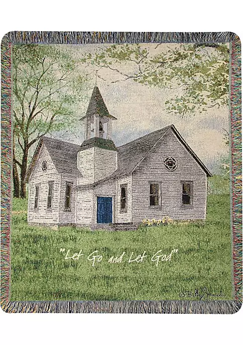 Let go; let god tapestry throw has something inspirational in it; with neat fringes around the border