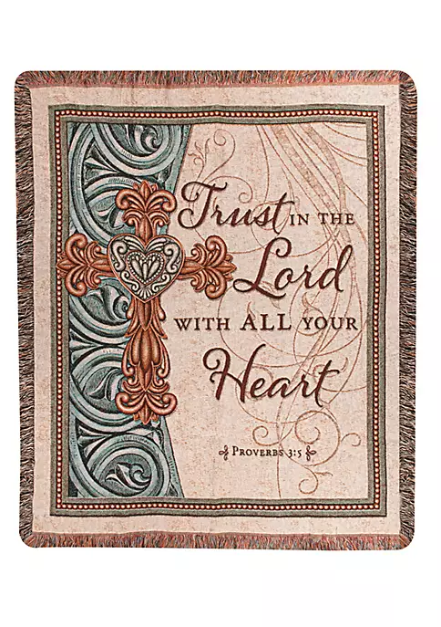Illustrates an ornate cross and a verse from proverbs 3:5